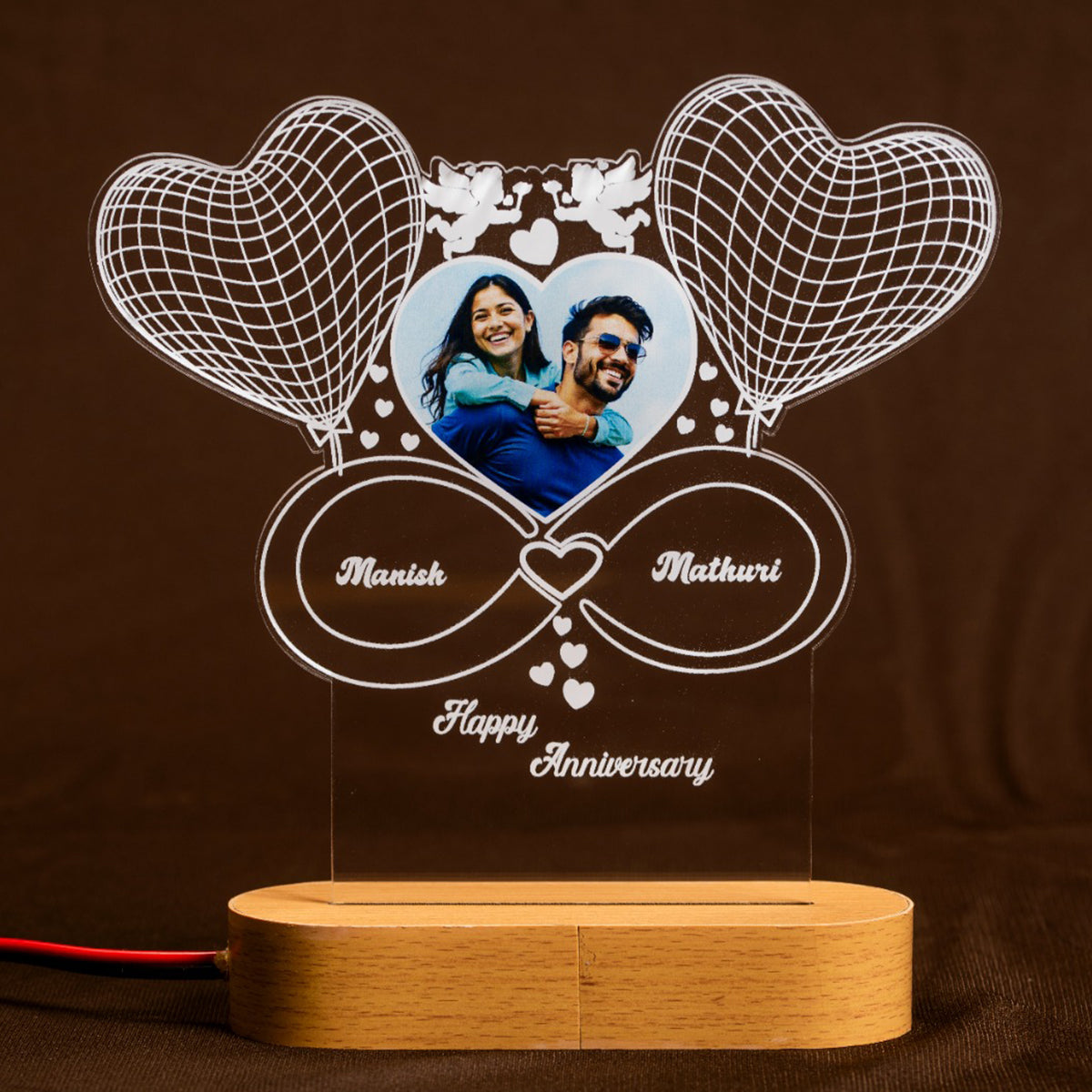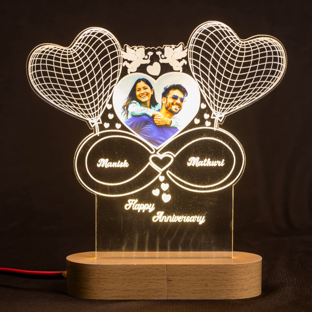 Gift your love with our PERSONALIZED INFINITY LOVE 3D ILLUSION LAMP WITH PHOTO. Buy your perfect online personalised anniversary gift - Infinity heart with light. Grab it now!