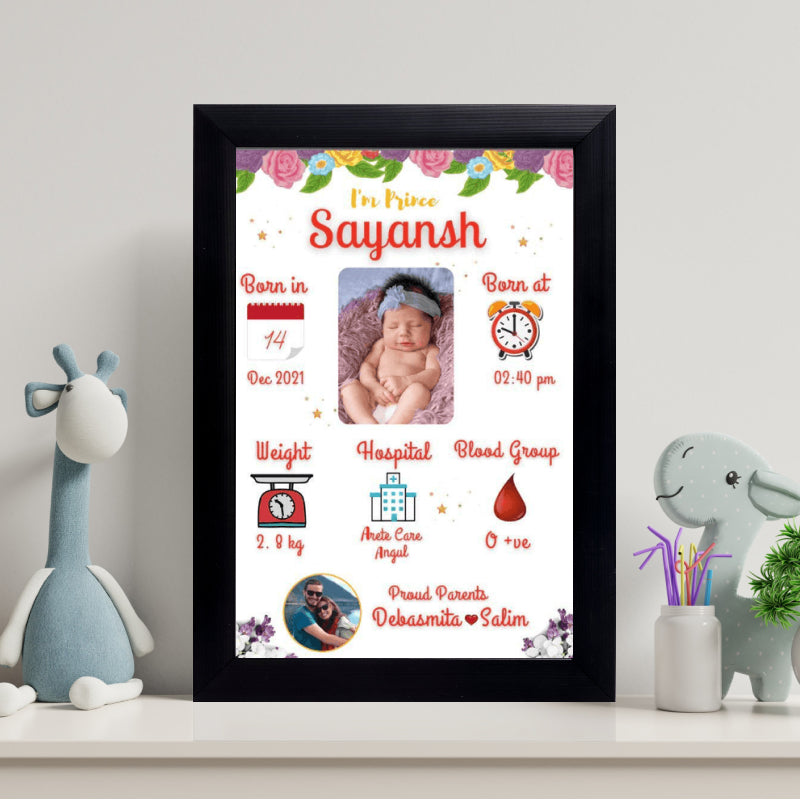 Lets frame and cherish your happy moments with baby details frame. Best newborn baby gifts to choose from.